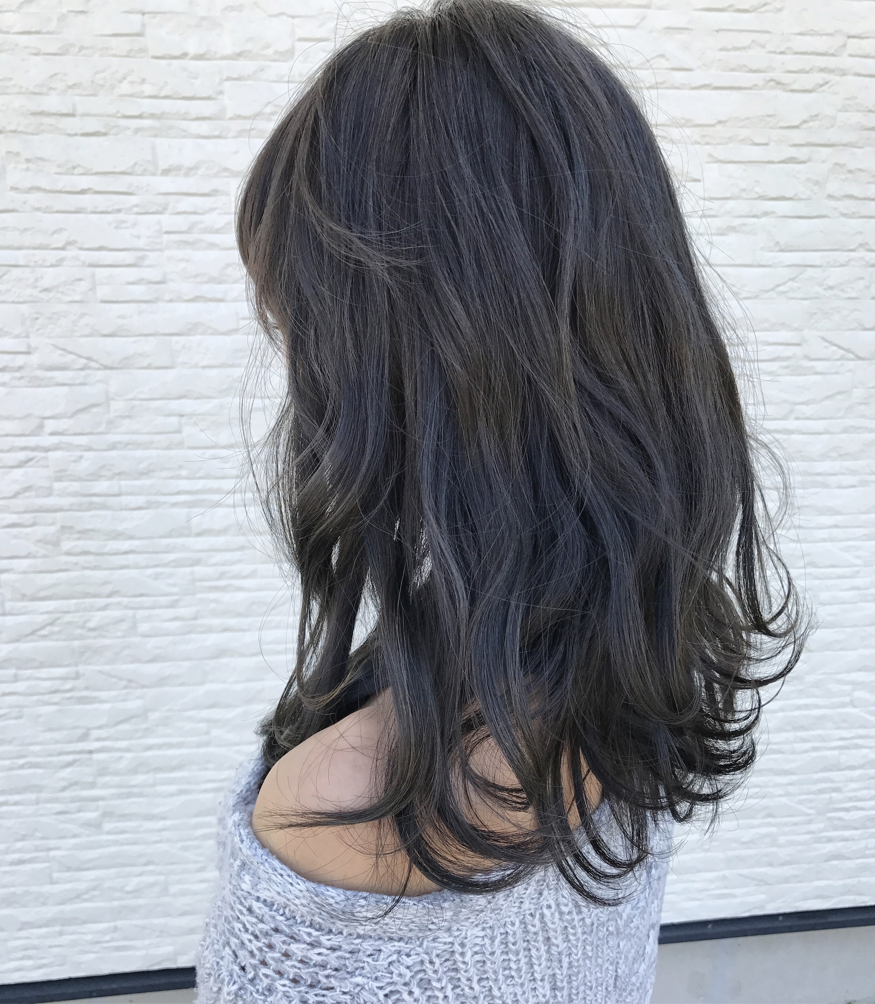黒染めしてた髪にブリーチハイライトでつくるグレージュのヘアカラー