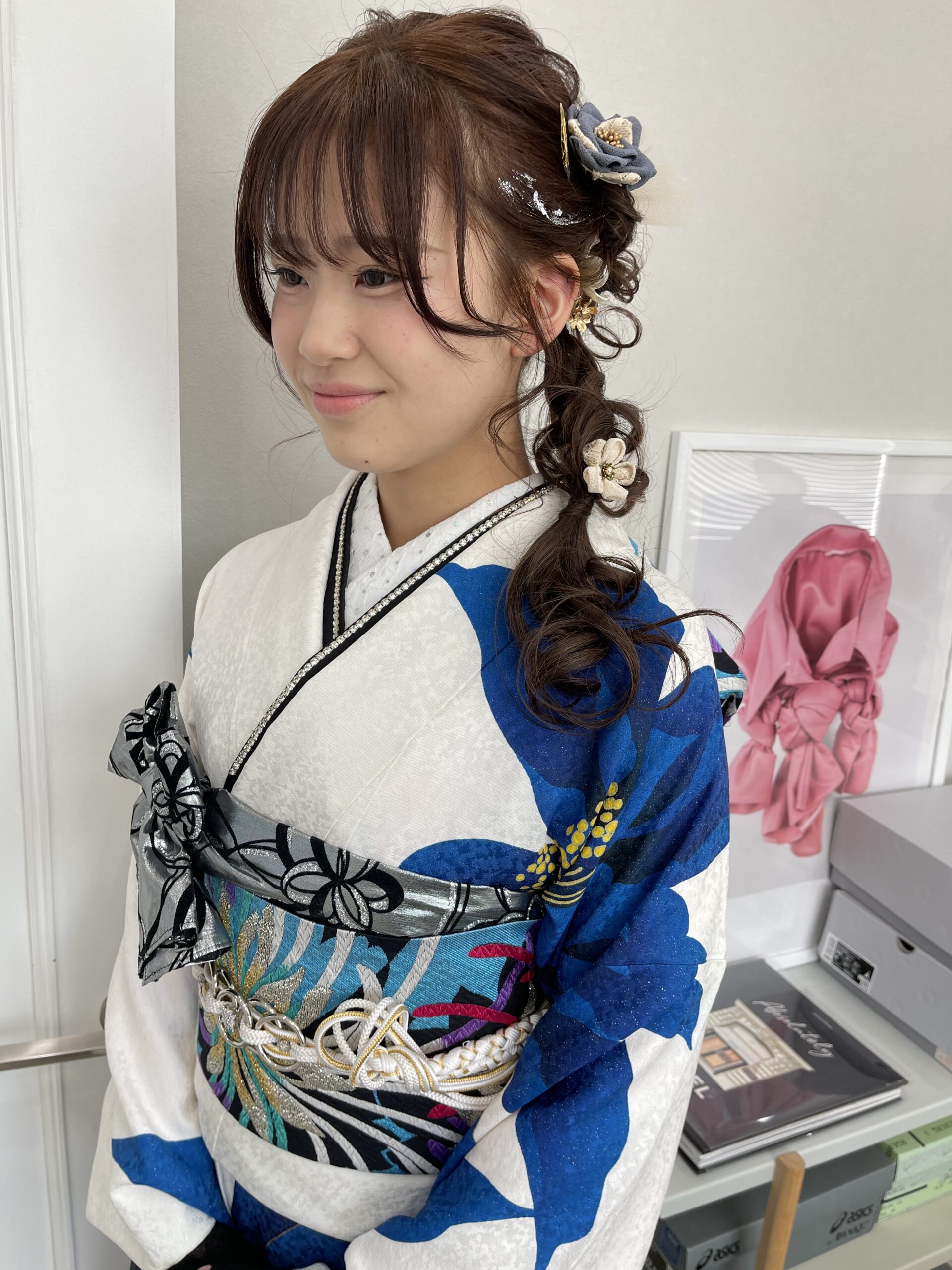 今回はまたまた成人式のヘアアレンジをご紹介いたします。 ボブのスタイルですが 艶感や質感に拘りながらアレンジさせていただきました。スタイリング剤もウェット感が出るようにやるのがポイントです。 最近は上げたりせずに 下ろし…